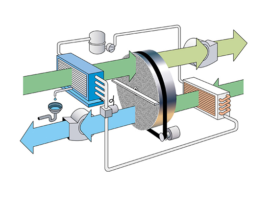 Die Abwärme des Kältekreises wird zur Niedertemperatur-Regeneration des Adsorptionsrotors genutzt. Für die Regeneration des Rotors wird beim Econosorb keine elektrische Wärme benötigt.