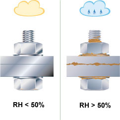 Eisen und Stahl rosten nicht, wenn die Luft über der jeweiligen Oberfläche eine relative Feuchtigkeit von unter 50% aufweist.