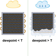 Auf einer Oberfläche entsteht keine Kondensation, wenn die mit ihr in Kontakt stehende Luft einen Taupunkt hat, der unter ihrer Oberflächentemperatur liegt.